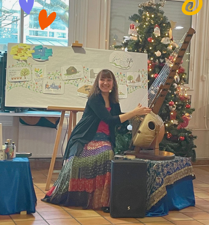 Valérie est intervenue 2 fois dans ma classe de moyenne section. Les contes sont vivants car surgissent de ses sacs des marottes et des instruments de musique pour capter l’attention des enfants.