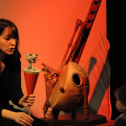 Un conte vivant est raconté avec des gestes, des petits objets et quelques notes de kora.